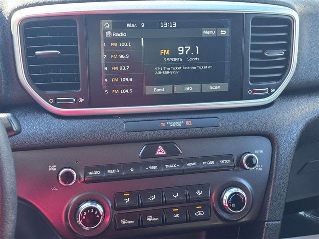 LaFontaine CDJR of Fenton is proud to offer this outstanding 2020 Kia Sportage an absolutely superb SUV with the following Features: 17 Machine-Finished Alloy Wheels, 4-Wheel Disc Brakes, 6 Speakers, 6-Way Manual Driver's Seat, ABS brakes, Air Conditioning, Alloy wheels, AM/FM radio, Apple CarPlay & Android Auto, Auto High-beam Headlights, Axle Ratio: TBD, Brake assist, Bumpers: body-color, Cargo Mat, Carpet Floor Mats, Cloth Seat Trim, Delay-off headlights, Driver door bin, Driver vanity mirror, Dual front impact airbags, Dual front side impact airbags, Electronic Stability Control, Exterior Parking Camera Rear, Four wheel independent suspension, Front anti-roll bar, Front Bucket Seats, Front Center Armrest, Front fog lights, Front reading lights, Fully automatic headlights, Illuminated entry, Low tire pressure warning, Occupant sensing airbag, Outside temperature display, Overhead airbag, Overhead console, Panic alarm, Passenger door bin, Passenger vanity mirror, Power door mirrors, Power steering, Power windows, Radio: AM/FM/MP3, Rear anti-roll bar, Rear seat center armrest, Rear window defroster, Rear window wiper, Remote keyless entry, Security system, Speed control, Speed-sensing steering, Split folding rear seat, Spoiler, Steering wheel mounted audio controls, Tachometer, Telescoping steering wheel, Tilt steering wheel, Traction control, Trip computer, and Variably intermittent wipers.