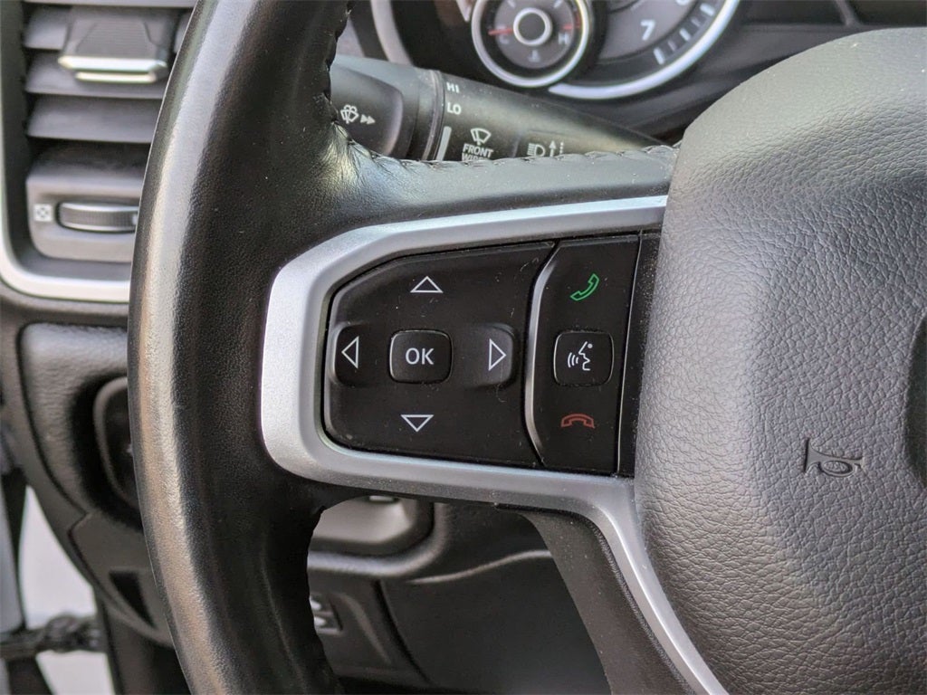 Class IV Receiver-Hitch, Handsfree Phone and Audio, Remote Start System, Apple CarPlay, Google Android Auto, Ready–Alert Braking, Rain–Brake Support, 1500 Big Horn/Lone Star, 4D Crew Cab, HEMI 5.7L V8 Multi Displacement VVT, 8-Speed Automatic, 4WD, Bright White Clearcoat, Black Cloth, 115V Auxiliary Power Outlet, 115V Auxiliary Rear Power Outlet, 8.4 Touchscreen Display, Air Conditioning ATC w/Dual Zone Control, Anti-Spin Differential Rear Axle, Apple CarPlay, Auto-Dimming Exterior Driver Mirror, Auto-Dimming Rear-View Mirror, Big Horn Level 2 Equipment Group, Brake assist, Class IV Receiver Hitch, Deluxe Cloth Bucket Seats, Dual Exhaust w/Black Tips, Dual front impact airbags, Dual front side impact airbags, Exterior Mirrors w/Memory, Fully automatic headlights, Google Android Auto, Heated Front Seats, Heated Steering Wheel, Integrated Voice Command w/Bluetooth®, Low tire pressure warning, MOPAR Trailer Camera Wiring w/No Camera, Night Edition, Occupant sensing airbag, Overhead airbag, ParkSense Front/Rear Park Assist w/Stop, ParkView Rear Back-Up Camera, Power 8-Way Driver Seat, Power Adjustable Pedals, Power-Folding Mirrors, Rear Power Sliding Window, Rear Window Defroster, Remote keyless entry, Remote Start System, Security Alarm, SiriusXM Radio Service, Steering wheel mounted audio controls, Telescoping steering wheel, Tilt steering wheel, Universal Garage Door Opener, Wheels: 20 x 9.0 Premium Paint/Polished.