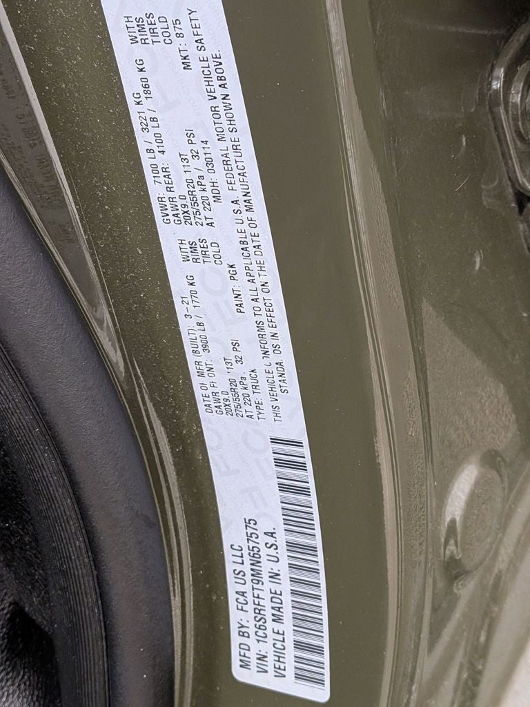 Handsfree Phone and Audio, Remote Start System, Ready–Alert Braking, Rain–Brake Support, Black Tubular Side Steps by Mopar, 1500 Big Horn/Lone Star, 4D Crew Cab, HEMI 5.7L V8 Multi Displacement VVT, 8-Speed Automatic, 4WD, Tank Clearcoat, Black Cloth, 115V Auxiliary Power Outlet, 115V Auxiliary Rear Power Outlet, 20 x 9 Aluminum Wheels, 4G LTE Wi-Fi Hot Spot, 5-Year SiriusXM Traffic Service, 8.4 Touchscreen Display, 9 Amplified Speakers w/Subwoofer, Air Conditioning ATC w/Dual Zone Control, Apple CarPlay, Auto-Dimming Exterior Driver Mirror, Auto-Dimming Rear-View Mirror, Big Horn Level 2 Equipment Group, Body Color Fender Flares, Brake assist, Built-To-Serve Edition, Built-To-Serve Edition I/P Badge, Class IV Receiver Hitch, Dual Exhaust w/Black Tips, Dual front impact airbags, Dual front side impact airbags, E-Locker Rear Axle, Front Extra HD Shock Absorbers, Front LED Fog Lamps, Fully automatic headlights, Google Android Auto, GPS Navigation, Heated Front Seats, Heated Steering Wheel, Hill Descent Control, Illuminated entry, Integrated Voice Command w/Bluetooth®, LED Reflector Headlamps, LED Taillamps, Low tire pressure warning, Mopar Black Tubular Side Steps, MOPAR Lockable Console Storage, Occupant sensing airbag, Overhead airbag, ParkSense Front/Rear Park Assist w/Stop, ParkView Rear Back-Up Camera, Power 8-Way Driver Seat, Power Adjustable Pedals, Power-Folding Mirrors, Premium Cloth/Vinyl Bucket Seats, Rear Extra HD Shock Absorbers, Rear Power Sliding Window, Rear Wheelhouse Liners, Rear Window Defroster, Remote keyless entry, Remote Start System, Security Alarm, SiriusXM Radio Service, Steering wheel mounted audio controls, Telescoping steering wheel, Tilt steering wheel, Tow Hooks, Universal Garage Door Opener, US Flag Decal, Variably intermittent wipers.