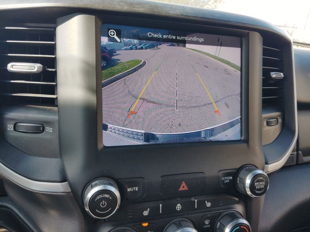 Handsfree Phone and Audio, Ready–Alert Braking, Rain–Brake Support, Integrated Voice Command with Bluetooth®, 1500 Big Horn/Lone Star, 4D Crew Cab, 3.6L V6 24V VVT, 8-Speed Automatic, 4WD, Bright White Clearcoat, Black Cloth, 115V Auxiliary Power Outlet, 115V Auxiliary Rear Power Outlet, 8.4 Touchscreen Display, Air Conditioning ATC w/Dual Zone Control, Anti-Spin Differential Rear Axle, Apple CarPlay, Auto-Dimming Exterior Driver Mirror, Auto-Dimming Rear-View Mirror, Big Horn Level 2 Equipment Group, Brake assist, Class IV Receiver Hitch, Deluxe Cloth Bucket Seats, Dual Exhaust w/Black Tips, Dual front impact airbags, Dual front side impact airbags, Exterior Mirrors w/Memory, Front fog lights, Fully automatic headlights, Google Android Auto, Heated Front Seats, Heated Steering Wheel, Illuminated entry, Integrated Voice Command w/Bluetooth®, Low tire pressure warning, Night Edition, Occupant sensing airbag, Overhead airbag, ParkSense Front/Rear Park Assist w/Stop, ParkView Rear Back-Up Camera, Power 8-Way Driver Seat, Power Adjustable Pedals, Power-Folding Mirrors, Rear Power Sliding Window, Rear Wheelhouse Liners, Rear Window Defroster, Remote keyless entry, Remote Start System, Security Alarm, SiriusXM Radio Service, Steering wheel mounted audio controls, Telescoping steering wheel, Tilt steering wheel, Universal Garage Door Opener, Variably intermittent wipers, Wheels: 20 x 9.0 Premium Paint/Polished.