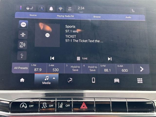 - UConnect 5 w/Seek-Scan, Clock, Aux Audio Input Jack, Steering Wheel Controls and Voice Activation