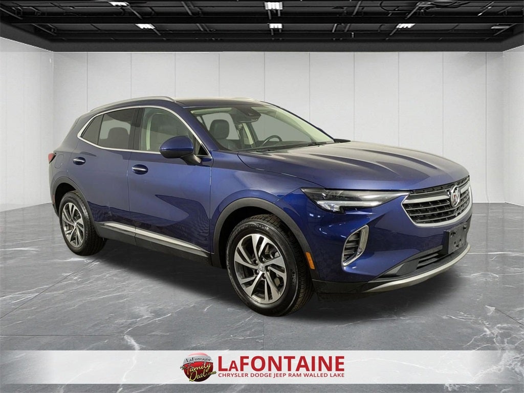 Handsfree Phone and Audio, Remote Start System, Envision Essence, 4D Sport Utility, 2.0L Turbocharged, 9-Speed Automatic, FWD, Sapphire, Ebony Seats Leather, 8-Way Power Driver Seat Adjuster, Apple CarPlay/Android Auto, Auto High-beam Headlights, Auto-dimming Rear-View mirror, Automatic Emergency Braking, Automatic temperature control, Brake assist, Dual front impact airbags, Dual front side impact airbags, Emergency communication system: OnStar and Buick connected services capable, Envision Driver Confidence, Following Distance Indicator, Forward Collision Alert, Front dual zone A/C, Front Pedestrian Braking, Front reading lights, Fully automatic headlights, Heated front seats, Heated steering wheel, IntelliBeam Headlamp Control w/Auto High Beam, Knee airbag, Lane Change Alert w/Side Blind Zone Alert, Low tire pressure warning, Memory seat, Occupant sensing airbag, Overhead airbag, Perforated Leather-Appointed Seat Trim, Power driver seat, Power Liftgate, Power passenger seat, Preferred Equipment Group 1SL, Premium audio system: Buick Infotainment System, Rear Cross Traffic Alert, Remote keyless entry, Steering wheel mounted audio controls, Telescoping steering wheel, Tilt steering wheel, Wheels: 18 Machined Aluminum w/Light Silver Met, Wireless Apple CarPlay/Wireless Android Auto.