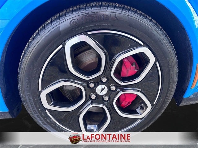 LaFontaine CDJR of Fenton is proud to offer this wonderful-looking 2023 Ford Mustang Mach-E a truly stunning SUV with the following Features: Equipment Group 400A, Navigation system: Connected Navigation, 10 Speakers, 4-Wheel Disc Brakes, ABS brakes, Air Conditioning, Alloy wheels, AM/FM radio: SiriusXM with 360L, AM/FM Stereo, Apple CarPlay/Android Auto, Auto High-beam Headlights, Auto-dimming Rear-View mirror, Automatic temperature control, Axle Ratio: 9.05, Brake assist, Bumpers: body-color, Compass, Delay-off headlights, Driver door bin, Driver vanity mirror, Dual front impact airbags, Dual front side impact airbags, Electronic Stability Control, Emergency communication system: 911 Assist, Exterior Parking Camera Rear, Four wheel independent suspension, Front anti-roll bar, Front Bucket Seats, Front Center Armrest, Front dual zone A/C, Front reading lights, Fully automatic headlights, Garage door transmitter, Heated ActiveX Sport Seats, Heated door mirrors, Heated front seats, Heated steering wheel, Illuminated entry, Knee airbag, Low tire pressure warning, Memory seat, Occupant sensing airbag, Outside temperature display, Overhead airbag, Overhead console, Panic alarm, Passenger door bin, Passenger vanity mirror, Power door mirrors, Power driver seat, Power Liftgate, Power passenger seat, Power steering, Power windows, Radio data system, Rain sensing wipers, Rear anti-roll bar, Rear seat center armrest, Rear side impact airbag, Rear window defroster, Rear window wiper, Remote keyless entry, Security system, SiriusXM Radio w/360L, Speed control, Speed-sensing steering, Speed-Sensitive Wipers, Split folding rear seat, Spoiler, Steering wheel mounted audio controls, SYNC 4A w/Enhanced Voice Recognition, Telescoping steering wheel, Tilt steering wheel, Traction control, Trip computer, Turn signal indicator mirrors, Variably intermittent wipers, and Wheels: 20 Machined-Face Aluminum.